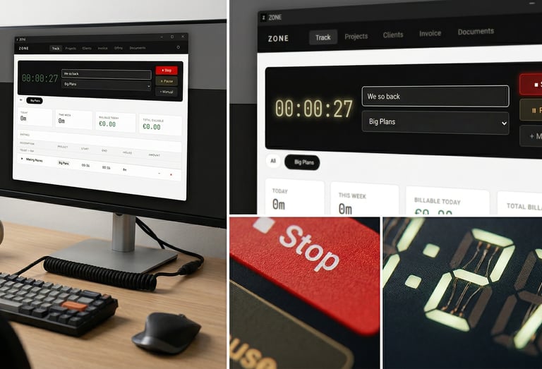 Track your time, generate invoices instantly, and focus on what actually matters: your work.