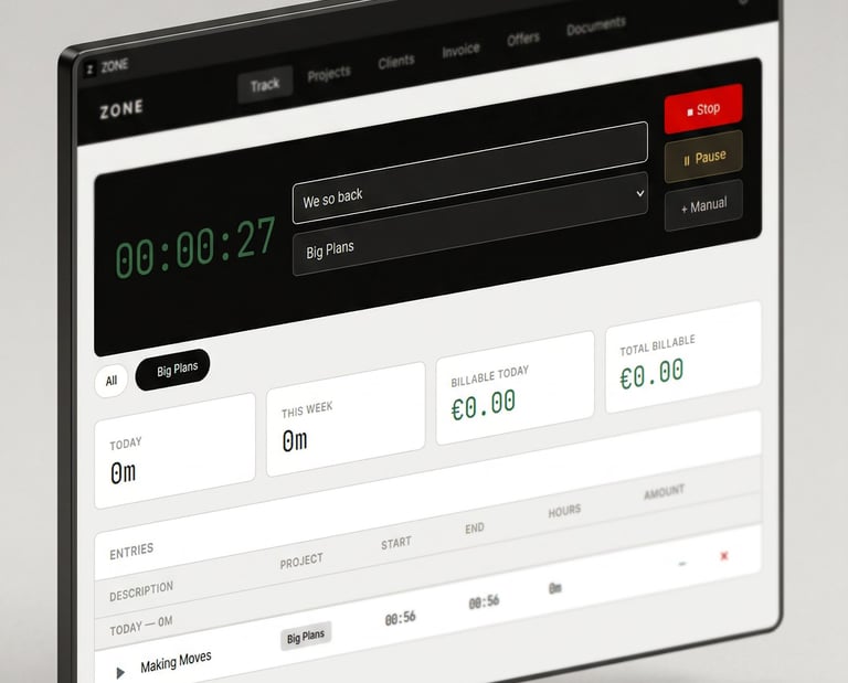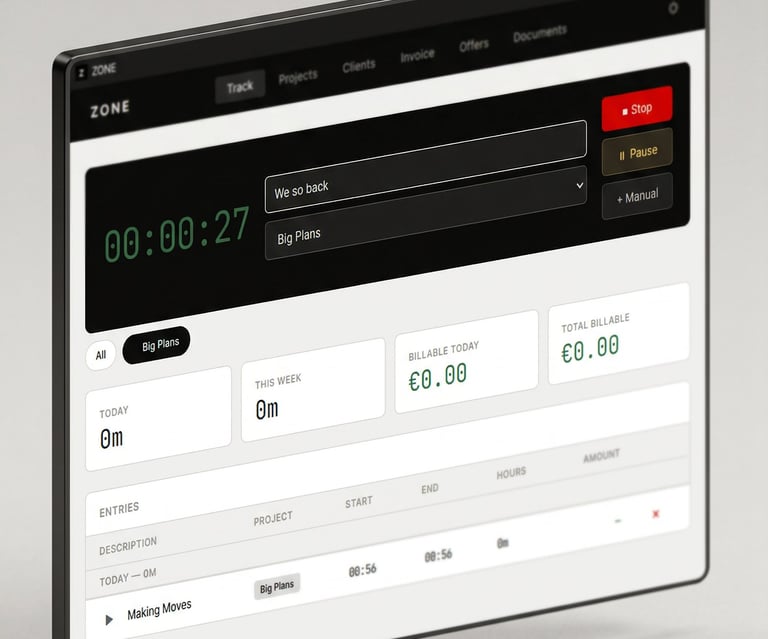 Zone makes time tracking effortless with automatic billing and a clean, minimal design.